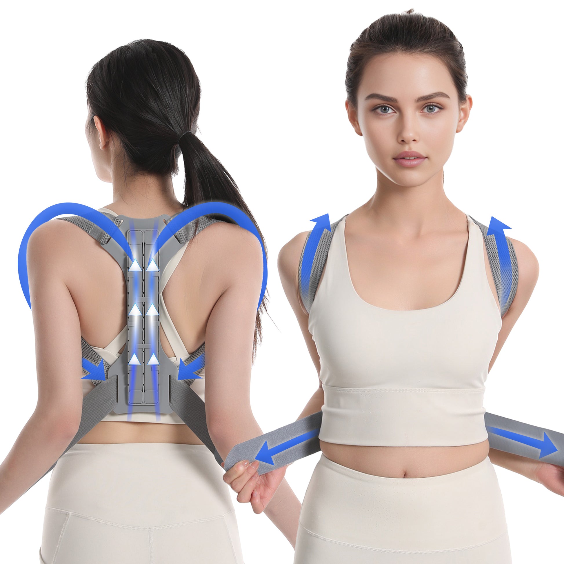 Posture correction support – helps straighten back, shoulders, and clavicle.