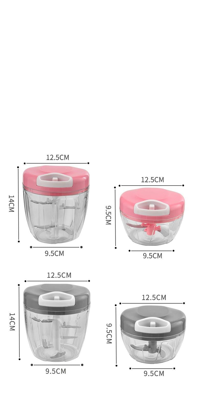 Crafted from ABS, PP, PC, and stainless steel, this chopper is durable, safe, and easy to clean. With a generous capacity of 500ml or 1000ml and a compact design, it’s suitable for both small and larger cooking tasks. Available in Cherry Pink and Gray, it adds a modern touch to any kitchen.